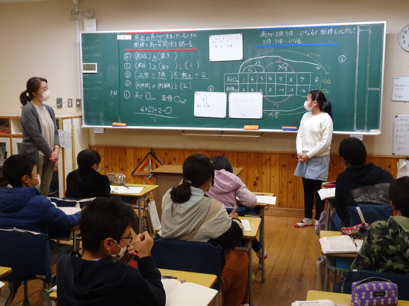 5年生は、算数で「台形の面積」の求め方を考えました! 自分の考えを一生懸命発表できました