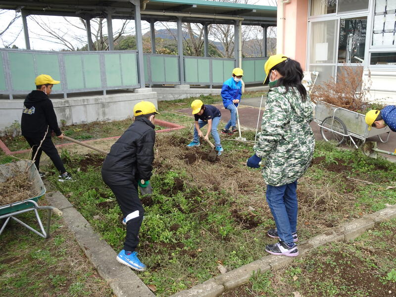 3年生の理科の時間、畑の草取りをして畑をきれいにしました!! 今日は4年生や5年生も畑仕事をして、畑がきれいになりました