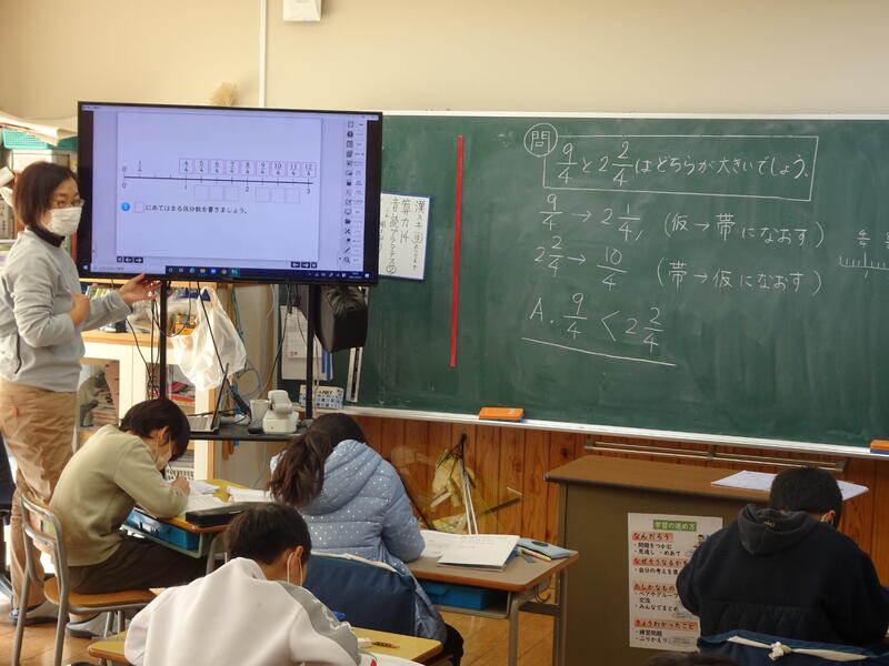4年生は算数で分数の大きさ比べをしました!! 帯分数を仮分数にしたり、仮分数を帯分数にしたりして考えました
