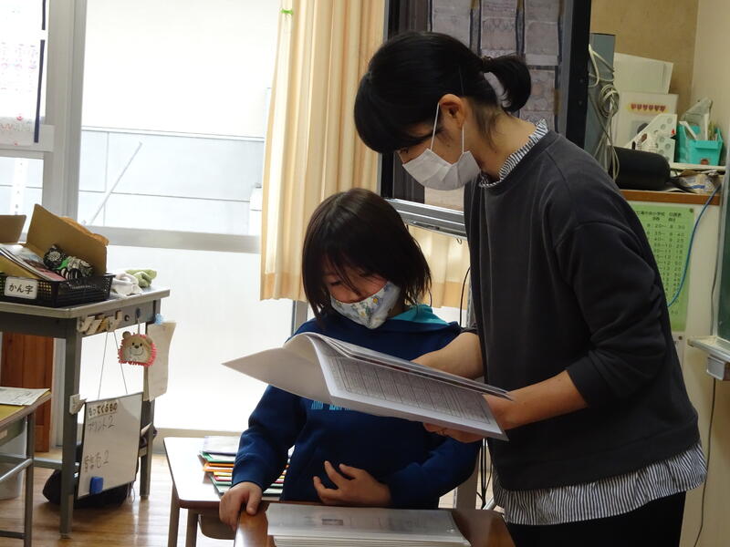 大そうじをして教室がきれいになった後は、お待ちかねの通知表タイムです