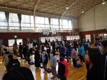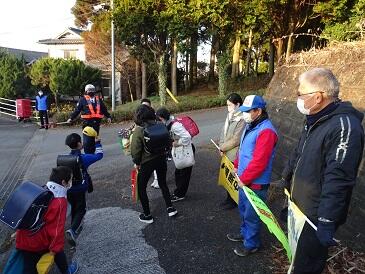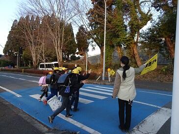 今日から3学期(52日)のスタートです。町議の宮川さんと井藤さん、青少年健全育成会の吉田さん、交番の那須さん、教育委員会社会教育係の寺床主事に見守られ元気に登校しました。