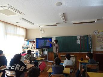 6年生の3学期は中学0年生として自覚をもって学校生活を送っています。1校時算数は学習のしあげです。図形の問題を各自で解き、皆で答え合わせをしました。電子黒板を使うと図形が提示しやすく、書き込みもできて効率よく学習できます。2校時は英語指導の齊賀先生と「外国の小学校」「My best memory.」「学校の自慢」を学習しました。いろいろな国の休日やランチなど日本との違いに驚いていました。齊賀先生のSchool Tripの思い出を英語で聞き取り「Excellent!」「Good!」と何度も褒められました。学校自慢では伝統芸能や芝生の運動場、給食室などを何とか英語で伝えようとして、笑顔が絶えない英語の時間でした。