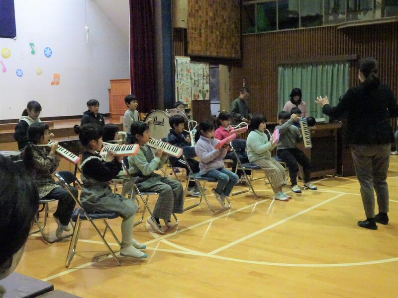 久しぶりに全員で校歌を3番まで歌うことができました。視線が左を向いている児童は久保先生の伴奏の上手さに見とれています。