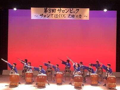 14日(土)は御船カルチャーセンター大ホールでサロンピックがあり、オープニングで5年生が「能寛太鼓」を披露しました。会場いっぱいの観客に笑顔で演技ができ、たくさんの拍手をいただきました。演技後のインタビューでは太鼓の由来や5年生の活動紹介が上手にできました。学校教育目標の中の7つ目「地域のニコニコ」が達成できたと思います。
