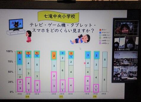 5校時は全校児童で、じょうどいクリニック小児科医の上土井貴子先生の講話を聴きました。本校では毎年、睡眠を含む生活習慣や、メディア長時間使用と脳・心・体の健康への影響について、上土井先生から教えていただく機会を設けています。また、児童の生活習慣や疲労度等の調査も継続して行っています。この3年間で「メディア2時間以上使用児童の減少」「児童の疲労度の減少」が成果として表れています!