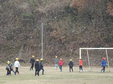 気温は-2℃ですが強風のため体感温度は-9℃のようです。横に降る雪の中、昼休みは25人ほどが外で元気に遊んでいました。吉山先生と田中先生は水道管の凍結防止対策をしてくださっています。