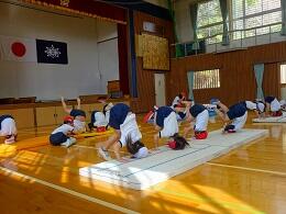 昨日の「やまびこ集会」では2年生が普段の体育の授業で行っている「スイッチオンタイム」の運動とかけ算九九の歌を披露しました。柔軟性を高める動きが上手でした。他の学年の感想発表で「技を真似して、家でやってみたいです。」という声もありました。
