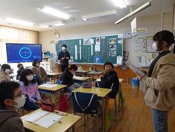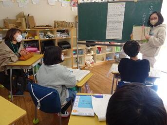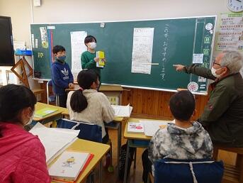 学校応援団週間最終日、5年国語「この本、おすすめします」に東部地区の吉澤さんと松本さんが入ってくださいました。ポスターセッション形式で推薦したい本について全員が発表し質問を受けました。最後にお2人からもそれぞれのおすすめの本や読書について話していただきました。「アラスカ物語」や「十五少年漂流記」「里見八犬伝」等、子供たちにも是非読んで欲しいし、読書によって時間や空間を旅行できる体験のおもしろさを味わって欲しいと思いました。