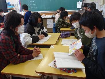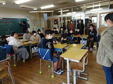 学校応援団週間!6年国語「思い出を言葉に」の授業は、小学校最後の1年の思い出を詩に書いて表したものを、地域の方(上野地区)に聞いていただく活動でした。「〇〇さんの子供の時はどうでしたか?」どのグループも会話が弾み終始和やかでした。最後に感謝の気持ちを込め、卒業式で歌う歌を披露しました。