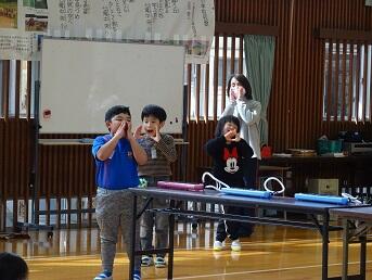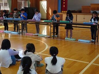 やまびこ集会は1年生が歌「やまびこごっこ」と楽器演奏「きらきら星」「ふしぎな音」を披露しました。ハキハキした発表、楽しい歌と演奏でした!上学年からの感想発表もたくさん手が上がっていました。