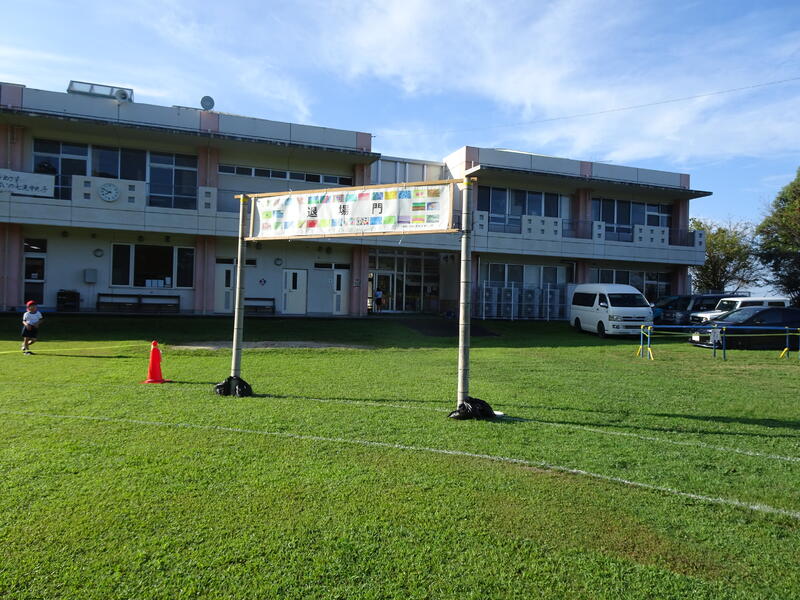 運動会も終わり、子供たちは昼休み、芝生の運動場を思い切り走りまわる姿が見られます。