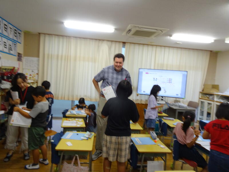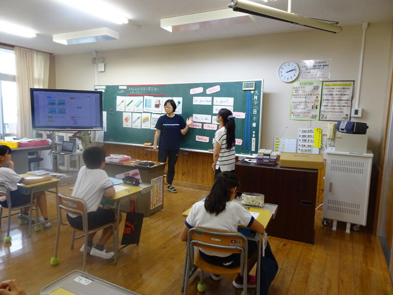 3年生では、クリス先生、齊賀先生と一緒にアルファベットについて学習しました。子供たちは、「自分のアルファベットを紹介しよう」ということで、クリス先生、齊賀先生、清田先生や友達に紹介し合う活動に取り組んでいました。