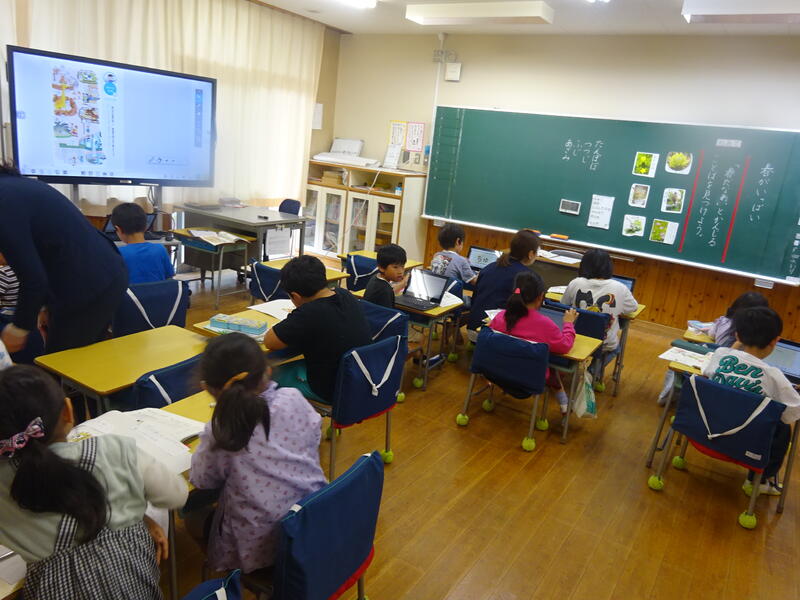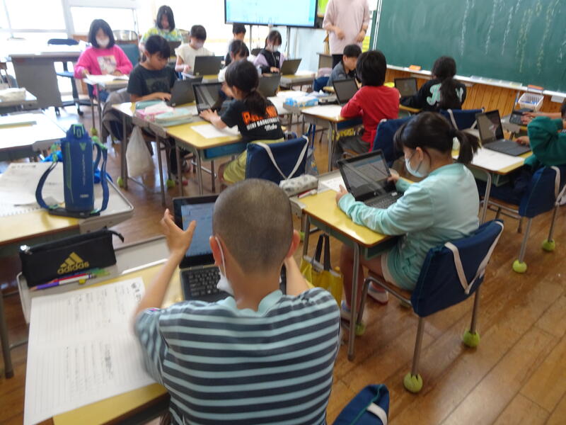 また、4年生は学級会がありました。クラスのキャラクターを決めようと自分の考えた作品をタブレットで写真に撮り紹介していました。