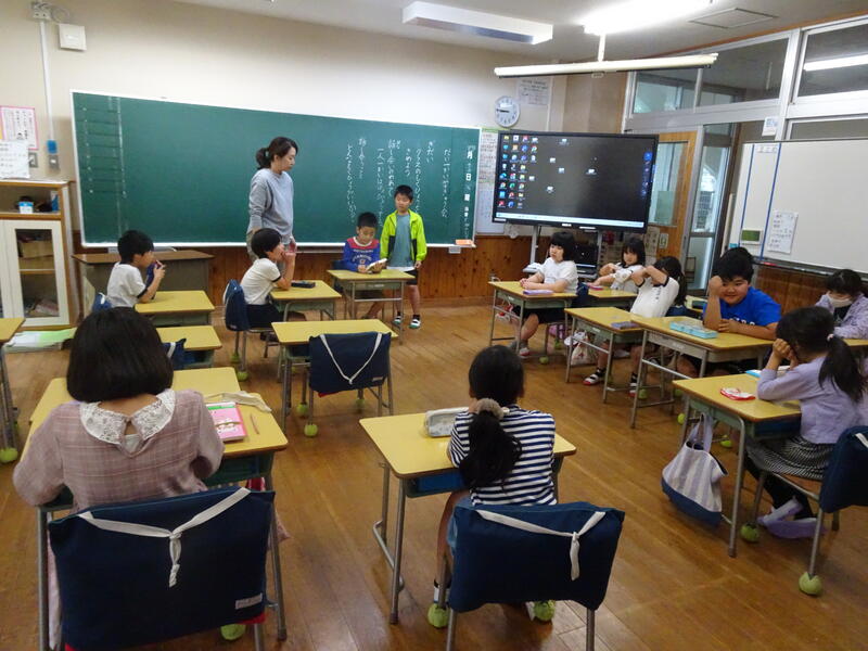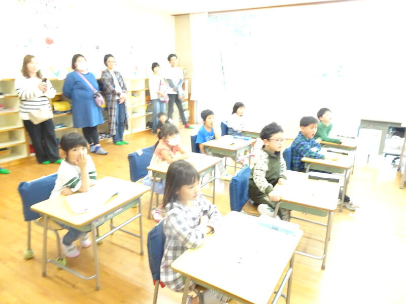 1年生は初めての授業参観で、朝から楽しみな様子が伝わってきました。どの学級も先生と一緒に授業に楽しんでいる子供の様子を見ていただきました。