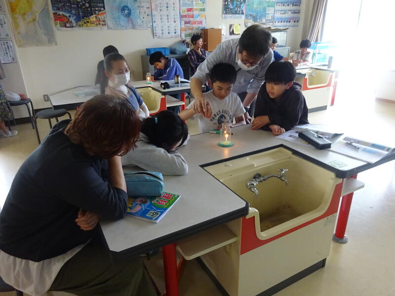 3年生は理科の授業です。教頭先生と一緒に頑張っています。