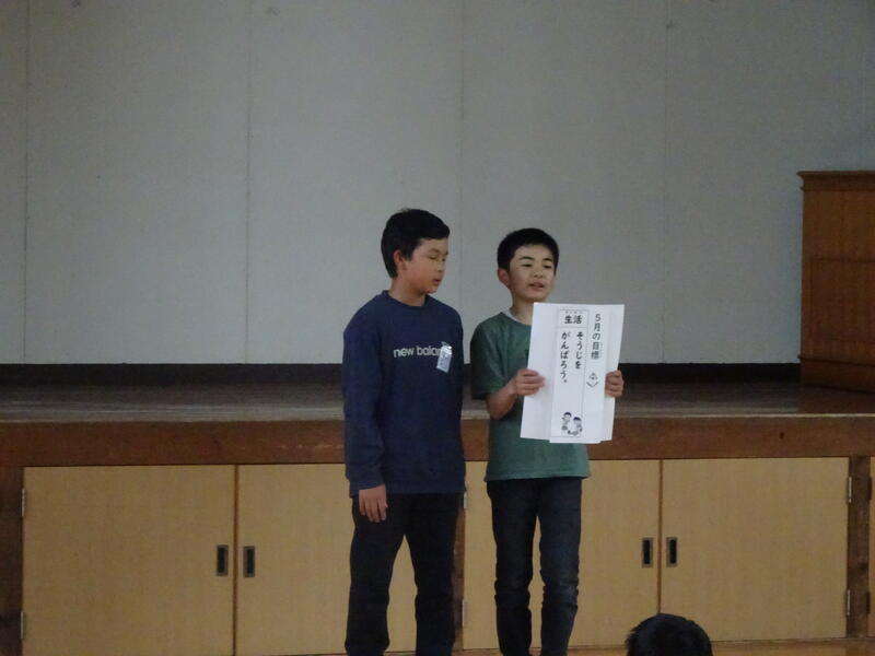 火曜集会では、「4月の月目標」の反省と5月の月目標が確認されました。