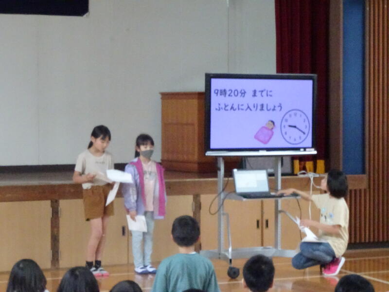 それぞれの委員会の子供たちが全体で発表してくれました。