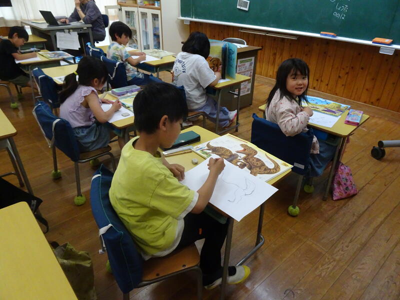 2年生は、図工で「恐竜の絵」に挑戦していました。