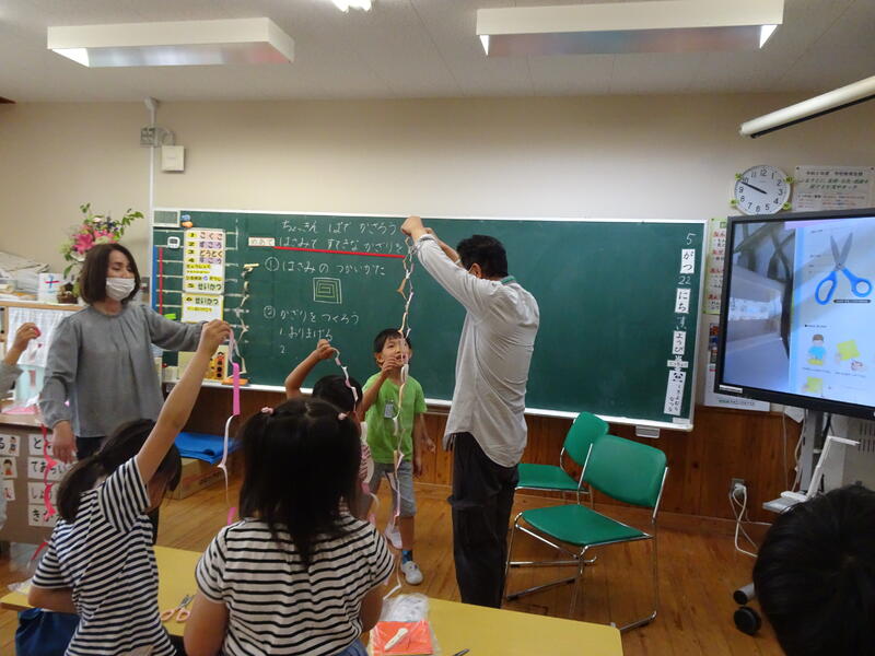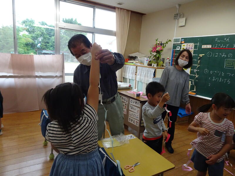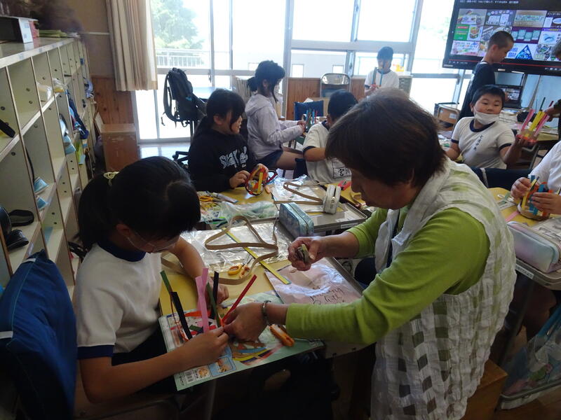 1年生は西部地区の方々に来ていただき、工作をしました。