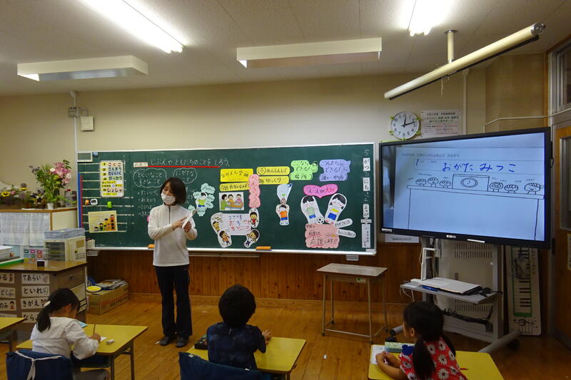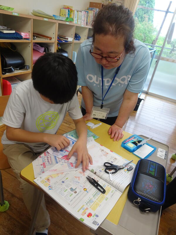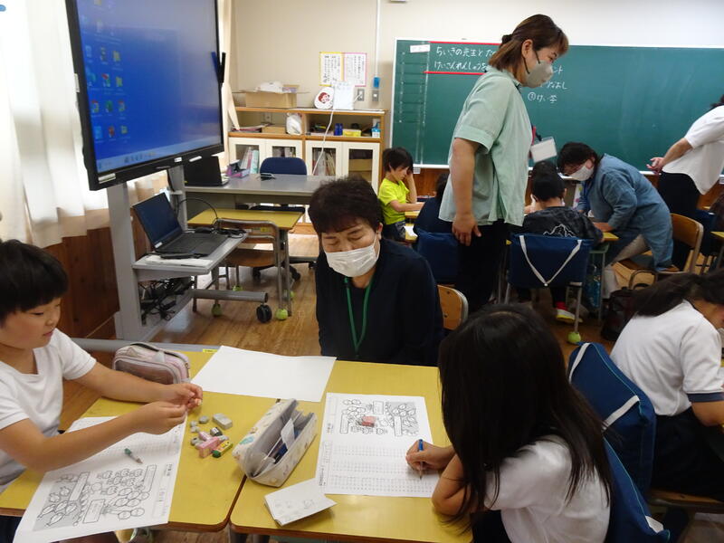 1年生は、木原先生、緒方先生と引き出しの授業をしました。それぞれが得意、不得意のことがあるという一人一人違うという学習をしました。