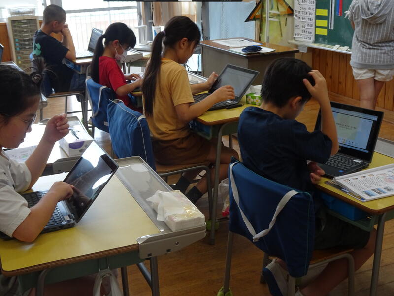4年生は社会の時間にタブレットで熊本の工業のまとめをしました。ローマ字入力にもなれ、自分で調べてまとめています。