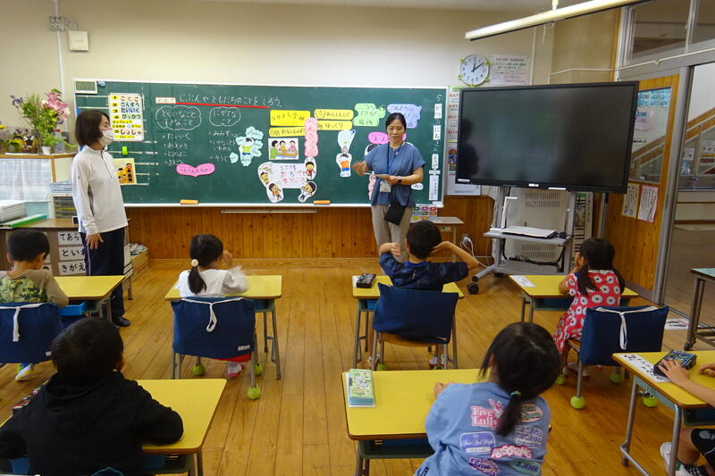 英語で自己紹介をしたり、茶摘みの手遊びをしたりしながら見守っていただきました。いつも以上に張り切っている子供たちの姿が見られました。