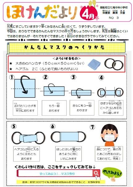 保健だより「簡単マスクの作り方」【4月27日(月)】