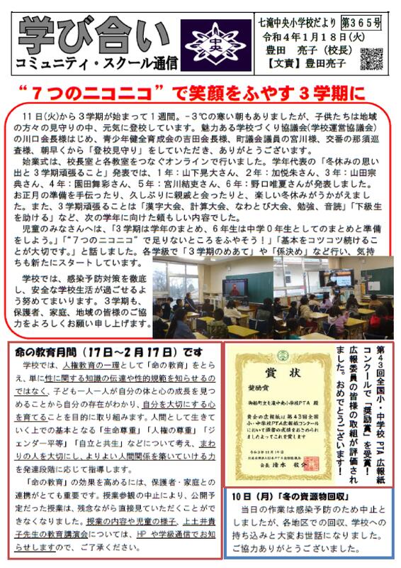 学校だより365号を更新しました。
