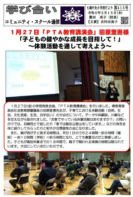 学校だより415号を更新しました。どうぞご覧ください。