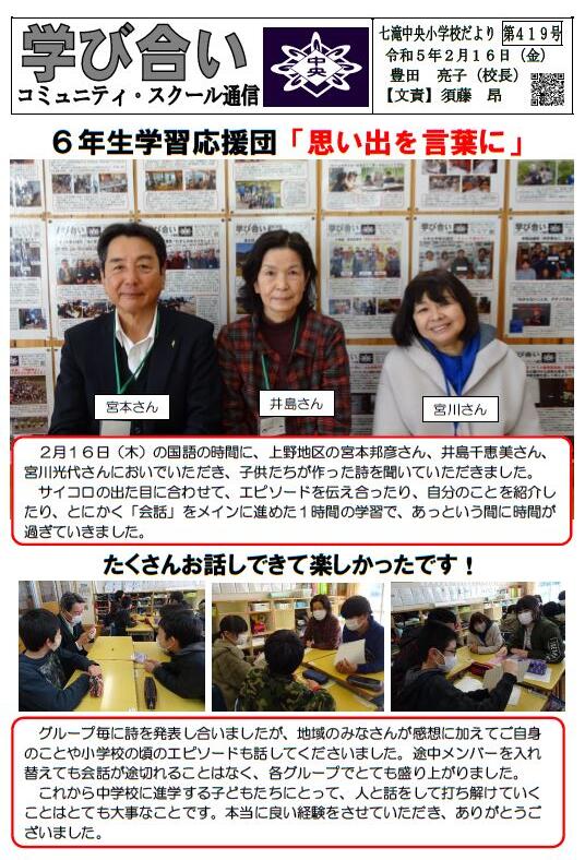 学校だより419号を更新しました。どうぞご覧ください。
