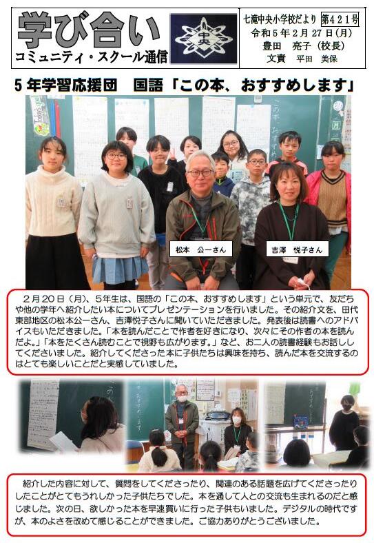 学校だより421号を更新しました。どうぞご覧ください。