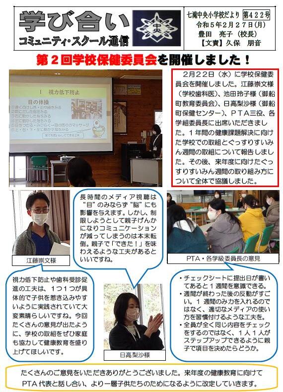 学校だより422号を更新しました。どうぞご覧ください。