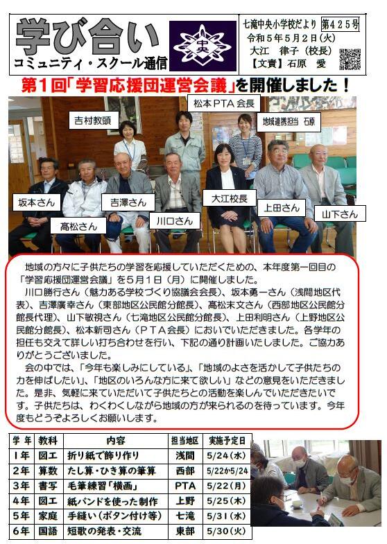 コミュニティスクール通信「学び合い」(425号)を更新しました。どうぞご覧ください。