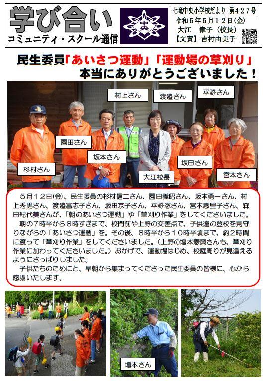 コミュニティスクール通信「学び合い」(427号)を更新しました。