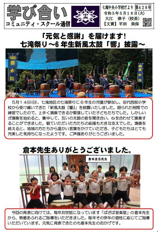コミュニティスクール通信「学び合い」(428号)を更新しました。どうぞご覧ください。