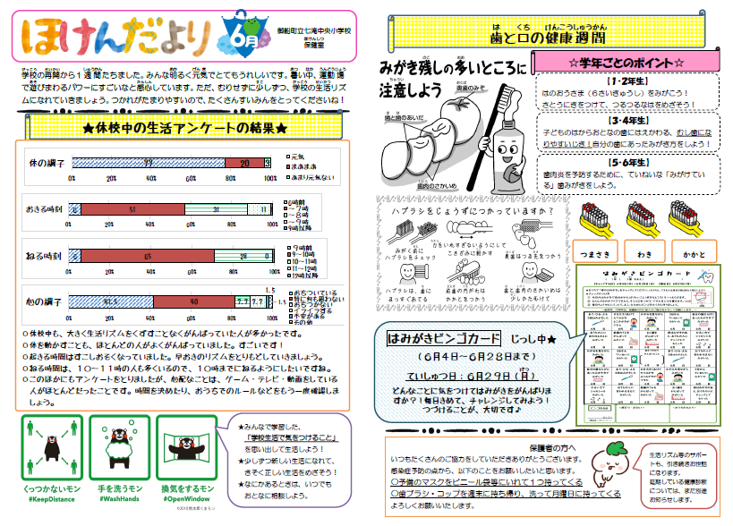早寝早起きでたっぷり睡眠をとること、手洗いを頑張ることなどたくさんのことを確認しました了解