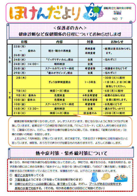 お知らせ今日は、1年生・2年生・6年生にそれぞれ保健指導で「学校生活で気をつけてほしいこと」(新しい学校生活様式)のお話をしました星
