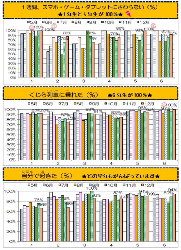 「自分で起きる」ことも今年からチェックしていますが、8割の人ができていました