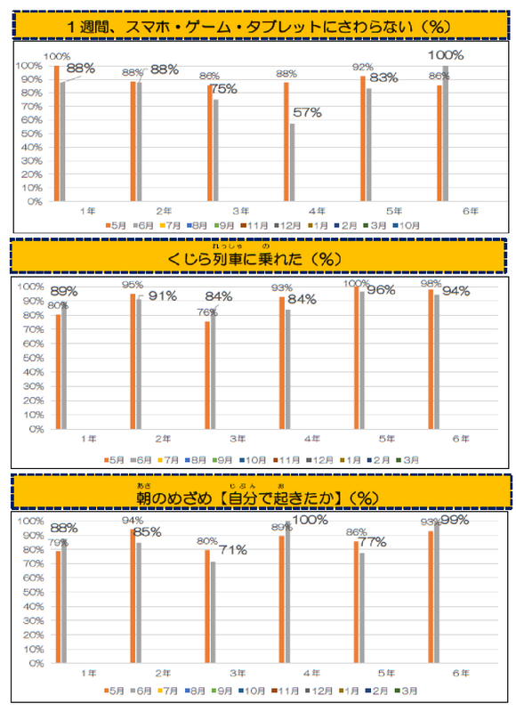 6月は「自学ノートコンクール」もあり、ゲームをしたり動画を見たりしていた時間を学習に充てることができた人が多かったようです