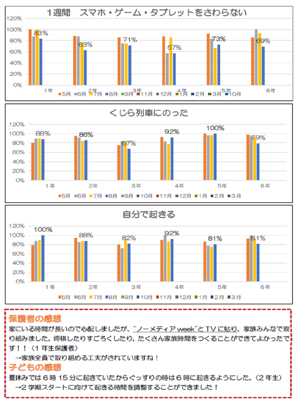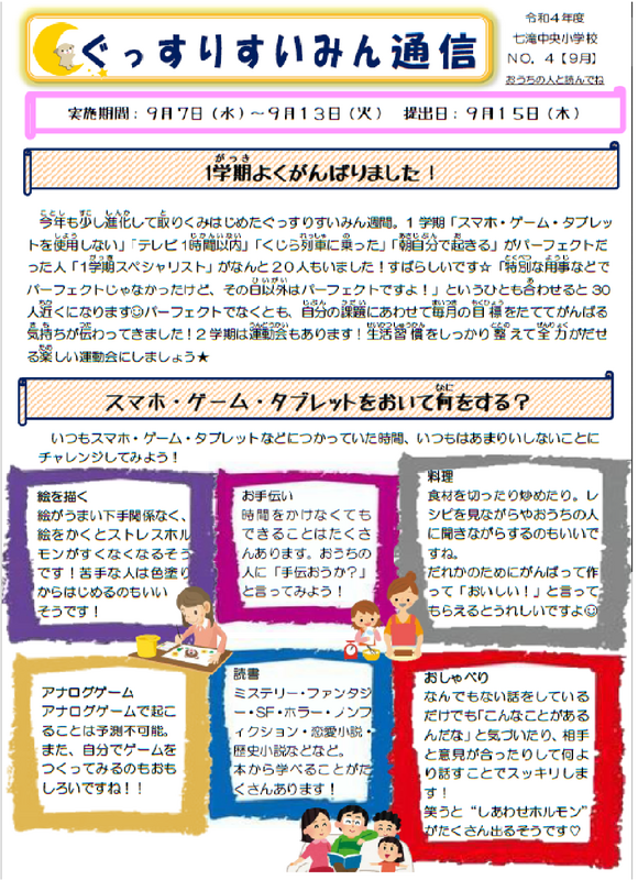 夏休み中のぐっすりすいみん週間や歯みがきカレンダーの記録をみると、調子を整えて2学期をスタートしようと頑張る姿勢が多くの子供たちから感じられて、とてもうれしいです