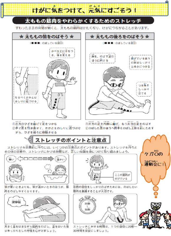 家でできるストレッチの方法を載せています。ぜひチャレンジして体をリフレッシュさせましょう
