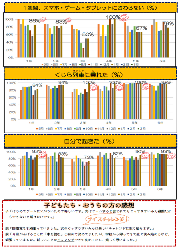ゲームやテレビが見れない時間を目標・計画を立てて自学に取り組んでほしいと思います