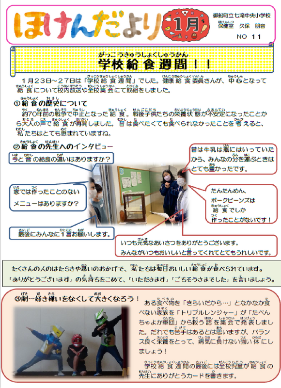 1月23日~1月27日の学校給食週間の活動の様子や、今年流行しているインフルエンザの対応等について載せています