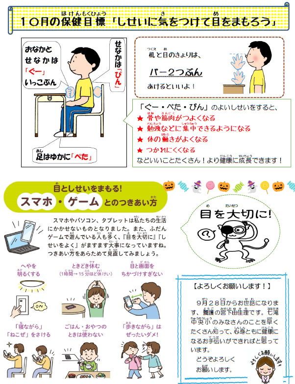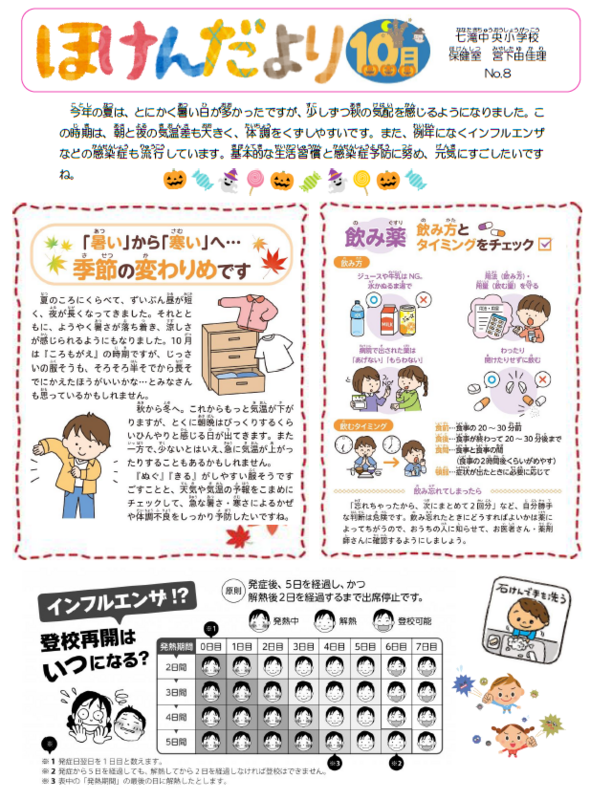 6年生は修学旅行も控えていますので、感染予防にご協力をお願いします