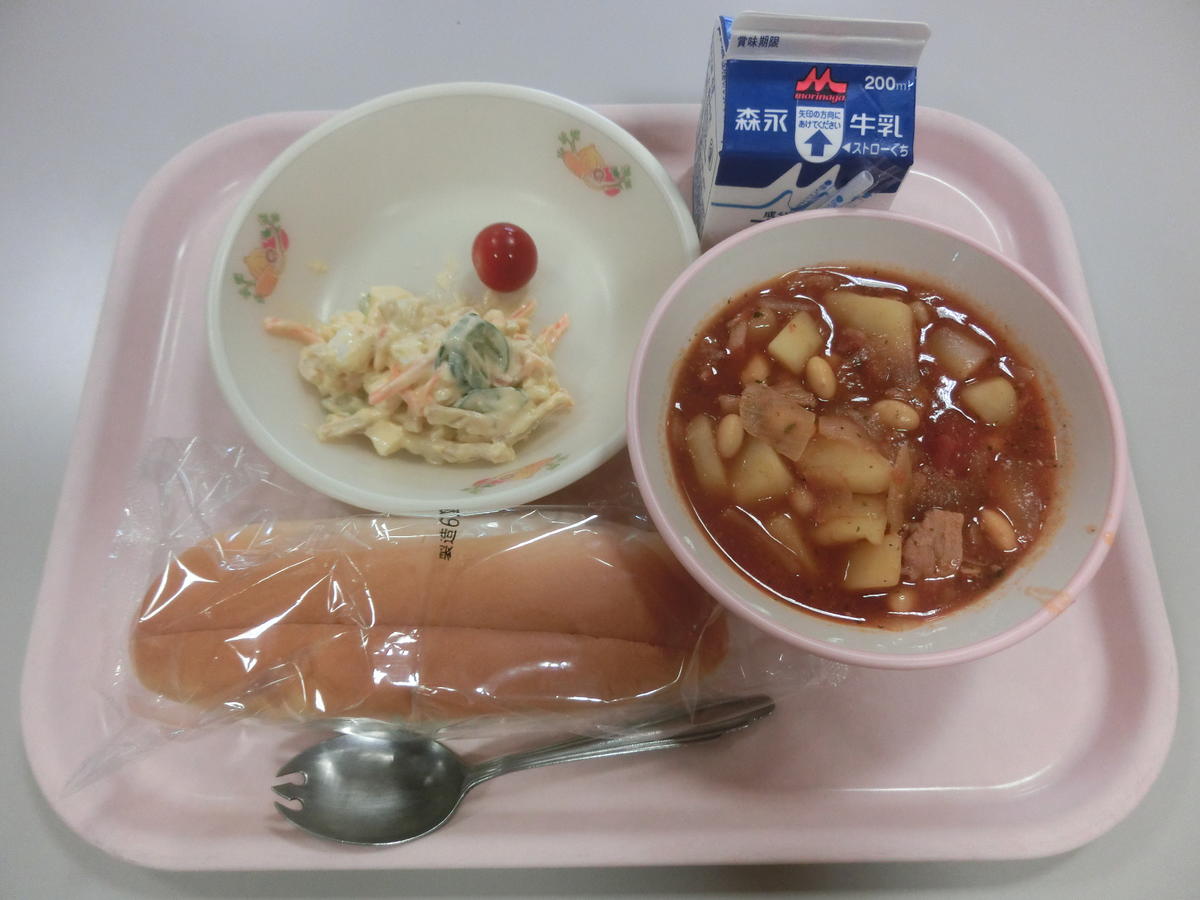 | こくとうパン トマトとたまごのスープ げんきがでるレバー すいか |