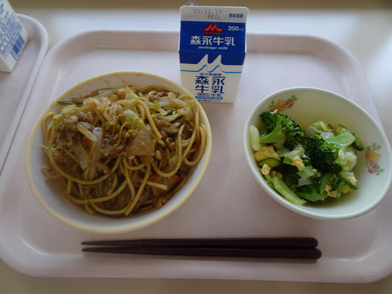 ※本日はミルクパンも予定されていましたが、欠席者が多く、一人あたりの焼くそばの量が多くなることから、パンは取り止めにすることにしました。久しぶりに登校した1~4年の子供たちも舌鼓を打ちました。