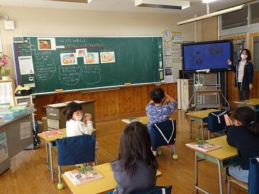 了解児童会運営委員の選挙運動が始まっています。コロナ前は給食時間に各教室を回って選挙運動をしていましたが、今はZoom配信で行っています。1年生もしっかりと耳を傾けていました。