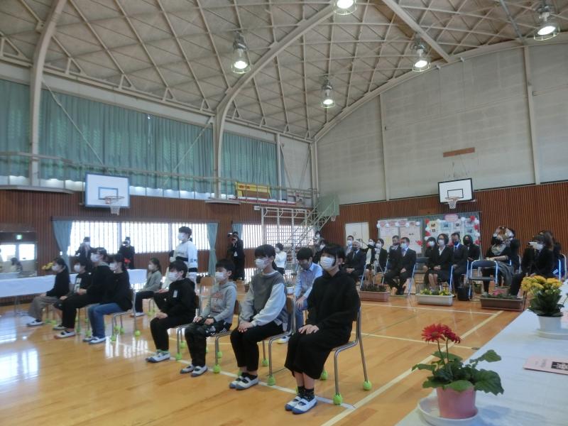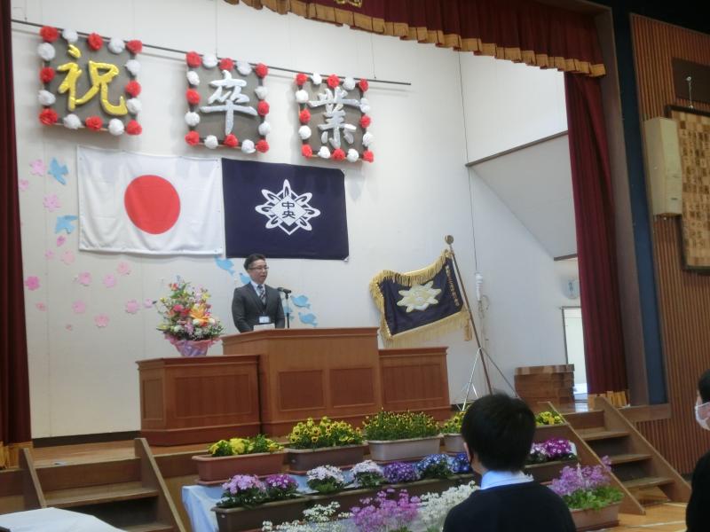 感染症対策のために、在校生は5年生のみの参列でした。しかし、1・2年生は6年生一人一人に大切に育てたチューリップを贈り、3・4年生は式中流される校歌を歌いました。在校生の気持ちはしっかり参加できた心温まる卒業式でした。