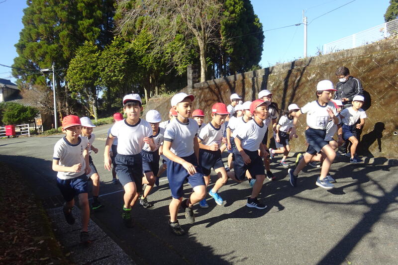 花丸夜のうちに雨が降った様子でお天気を心配しましたが、持久走が始まるころにはお日様が顔を出しました興奮・ヤッター! 良かった!