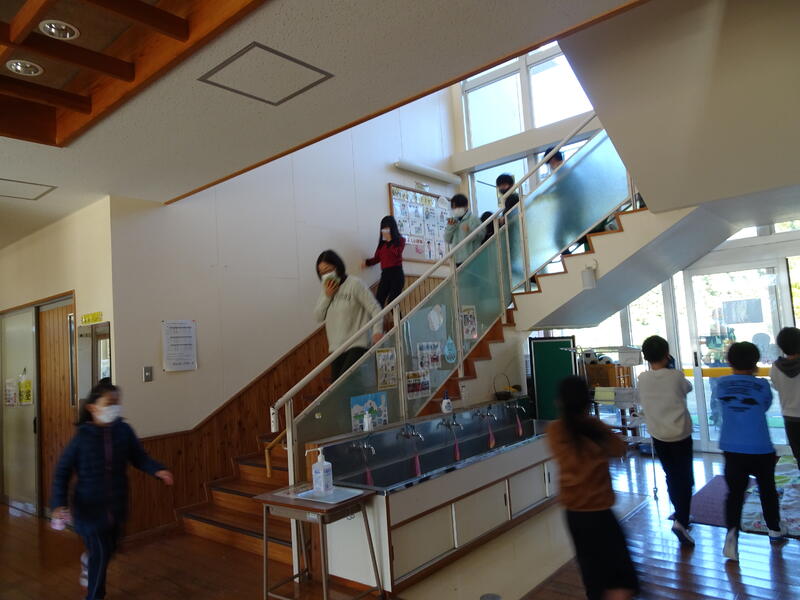 花丸2時間目に火災避難訓練をしました! 上益城消防組合消防本部の消防士さんに来ていただいて、安全な避難の仕方、火事をおこさないための約束、消火器を使った消化の仕方等をお話していただきました! 子ども達の避難の仕方を褒めていただきました興奮・ヤッター! 救助工作車の中を見せていただいたりヘルメットをかぶらせていただいたりして、大変勉強になりました!!